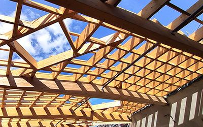 C’est la rentrée avec un tour des travaux du groupe scolaire et centre de loisirs de Coupvray. Le chantier suit son cours avec la poursuite de la charpente et des bardages bois. On reconnaît depuis la vue de la toiture la forme enveloppante de la cour de récréation.
