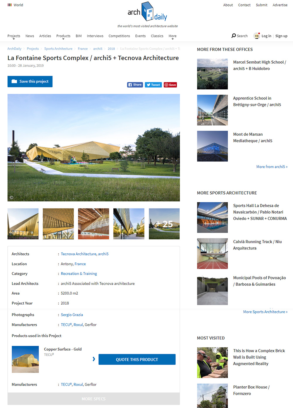 Archdaily – Complexe multisports La Fontaine, Antony