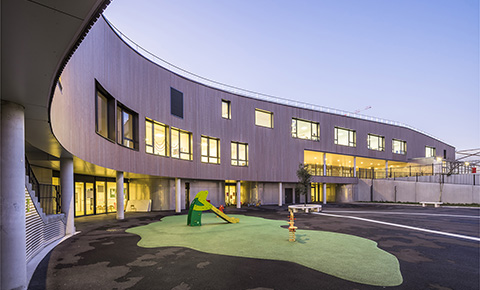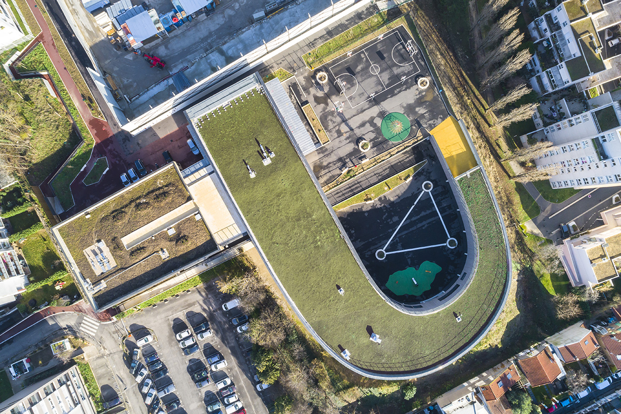 PROGRAM : Conception & construction of the north primary school, landscaping, leisure center, restaurant, mediatheque. Vegetated roof, sustainable materials, solar panels.