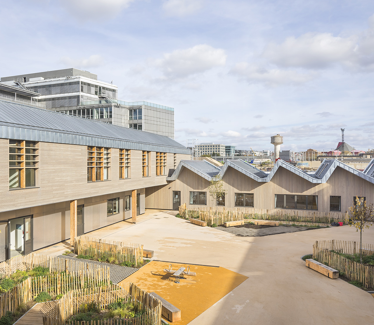 The environmental approach is multi-criteria. It determines functional choices, materials, the passive approach and the educational aspect dedicated to children. By allowing for modularity, and therefore mutability, the building increases its lifespan, its suitability for use and its long-term usefulness.