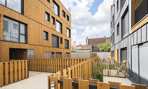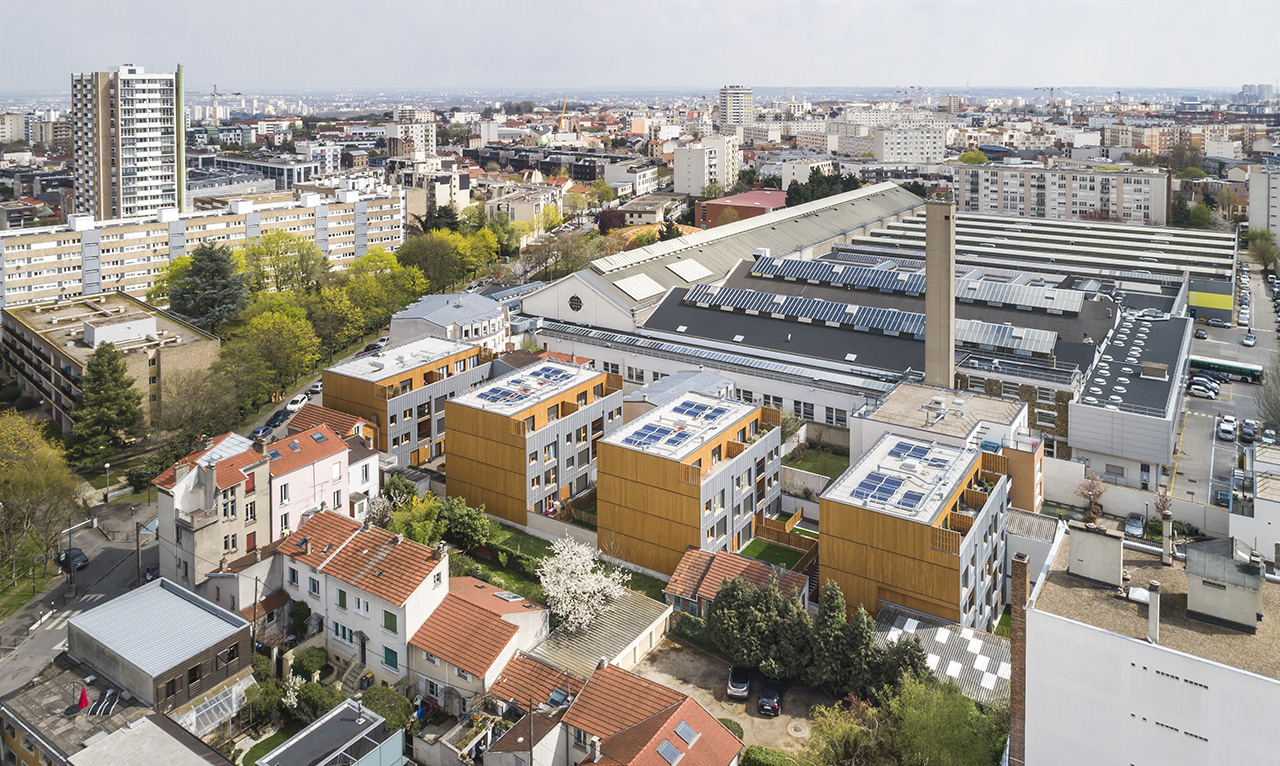 Le projet occupe une parcelle en « lanière », assez longue et étroite, caractéristique des anciennes parcelles maraîchères. Le bâti alentour est très hétérogène. Des logements collectifs de neuf niveaux au nord, des espaces de pelouse et de plantations basses, un dépôt d’autobus et une venelle typique de l’ancien tissu urbain.