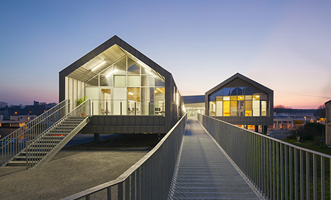 Il s’agit de donner un lycée qui ressemble à Gisors et s’y intègre. Un établissement ancré dans une cité à échelle humaine et aux références historiques riches. Une ville qui compose avec un passé médiéval, dont témoigne son château fort, et la permanence de son environnement rural qui s’exprime dans ses corps de ferme.